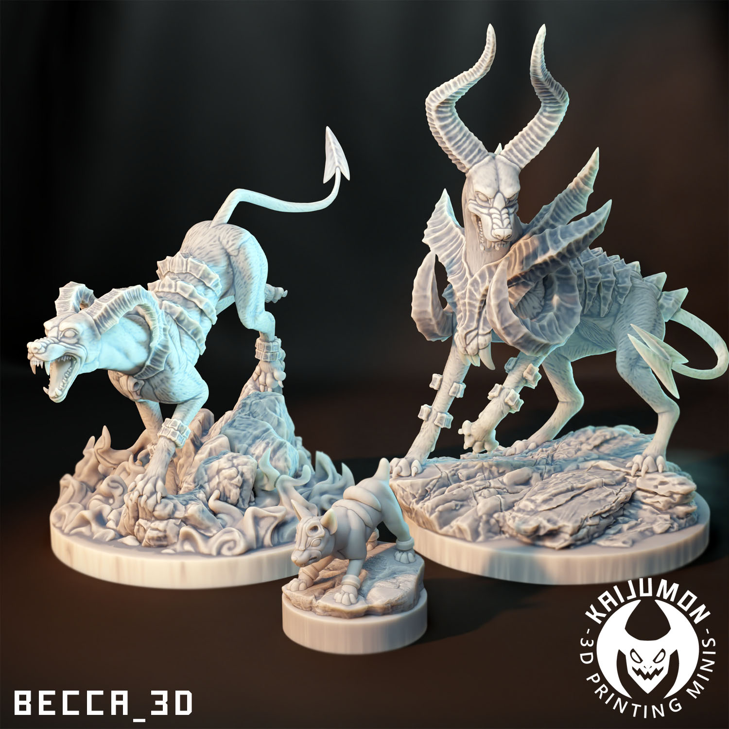 Kaijumon Hellhound Line Miniatures | 3D Printed Collectible | Figurines
